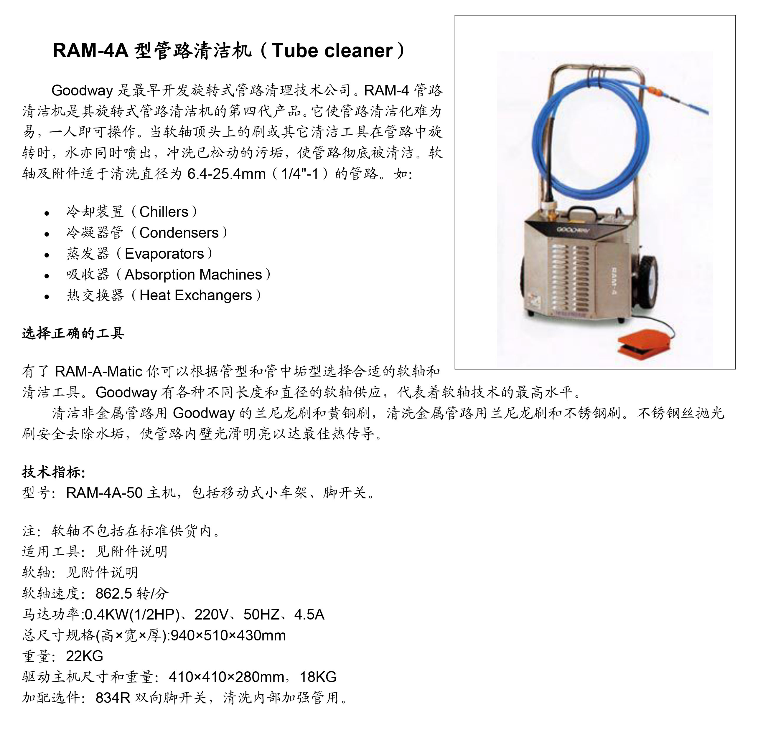 RAM-4X 型管路清潔機(jī)有助于節(jié)省時(shí)間和金錢,并提高全球熱交換器的效率。全新 RAM-4 是這款市場領(lǐng)先的管道清潔器的第五代。它擁有時(shí)尚的現(xiàn)代設(shè)計(jì)、改進(jìn)的便攜性和直觀的控制,使 RAM-4 管道清潔器成為全球的選擇,使艱難的換熱器管道清潔成為一種簡單的單人