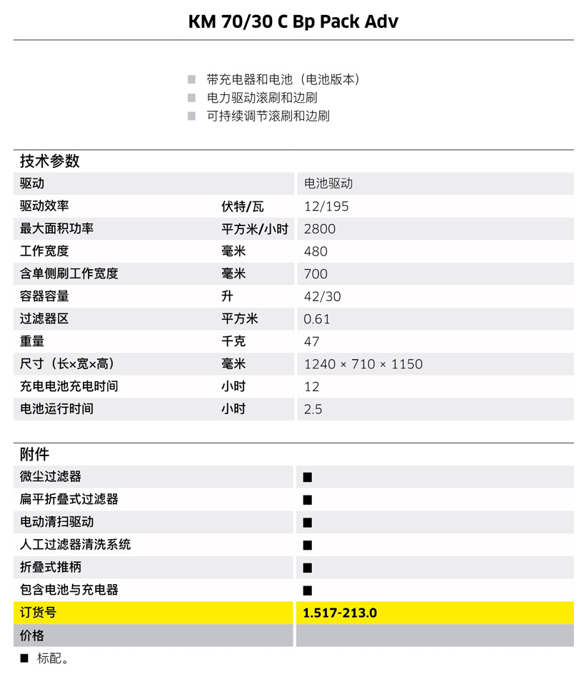 KM 70/30 C Bp Pack Adv電池手推式掃地車